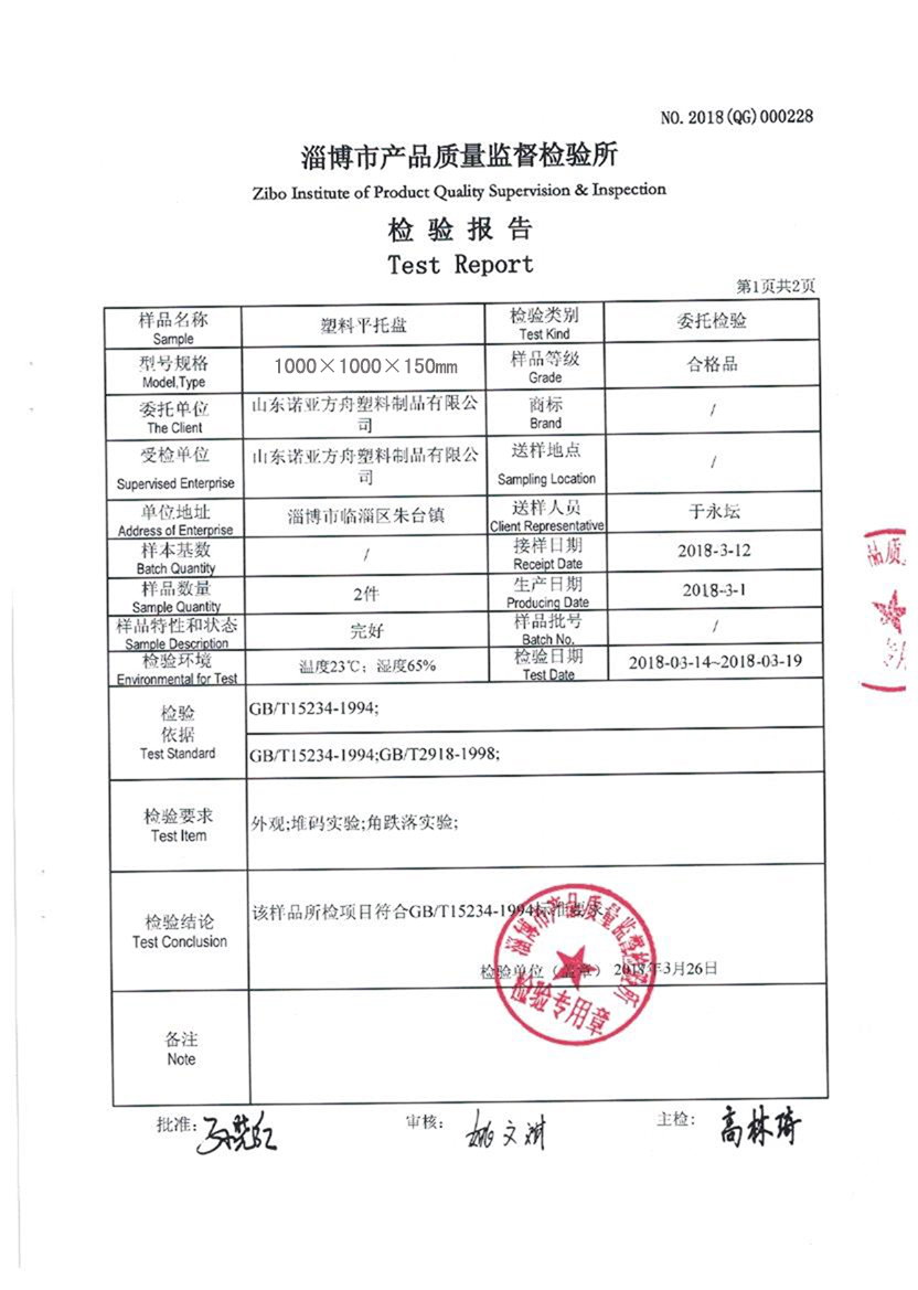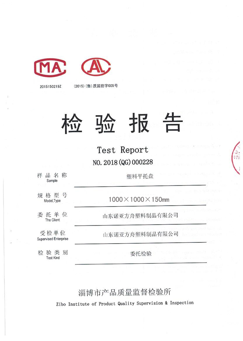 (塑料托盤質(zhì)檢報告)淄博市產(chǎn)品質(zhì)量監(jiān)督檢驗(yàn)所